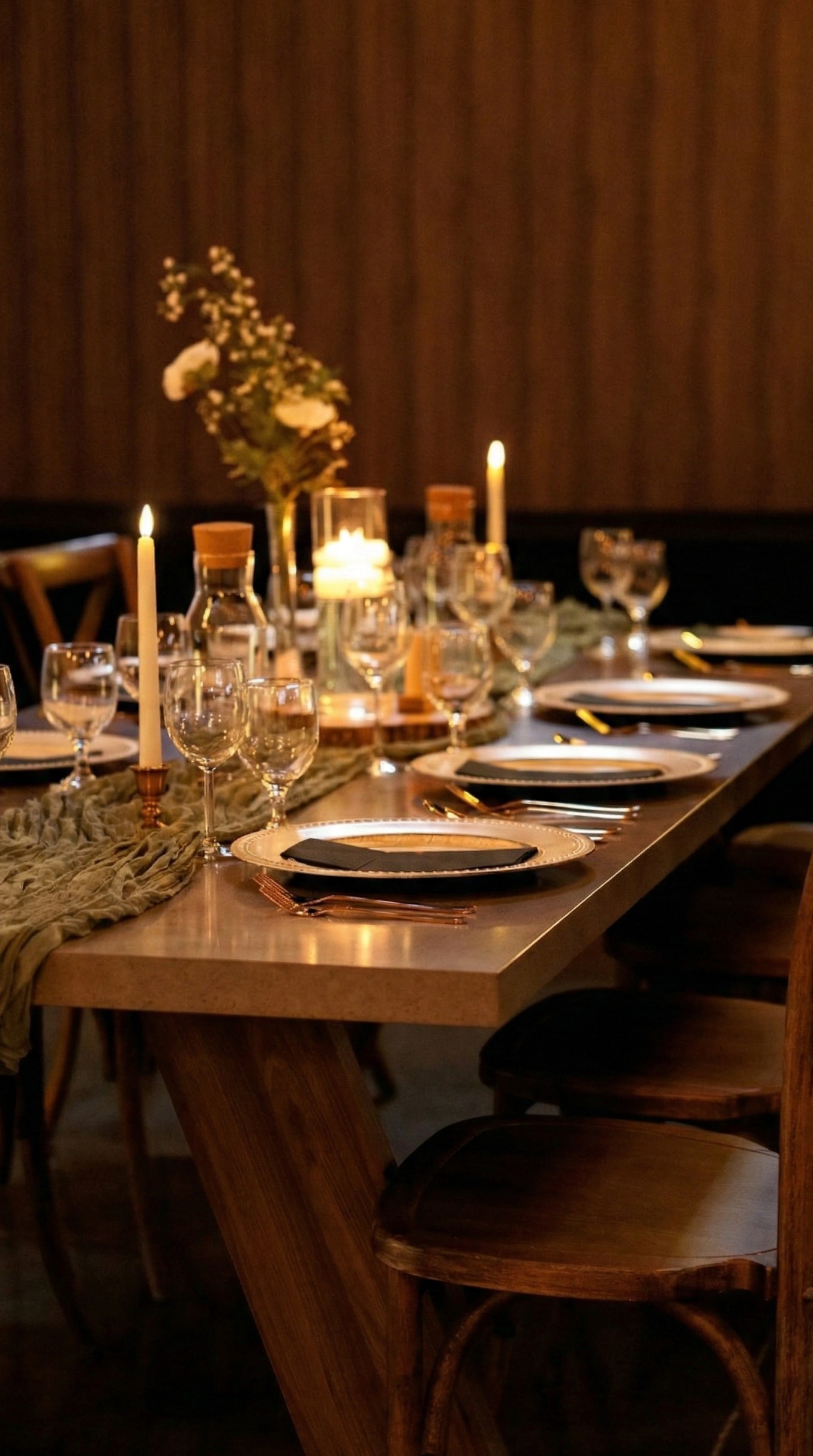 Rustic charm meets sophisticated elegance. Our venue offers a unique blend of contemporary and rustic design, creating an ambiance that elevates every moment. Picture crystal chandeliers gracefully hanging from the ceiling, casting a soft, romantic glow over your event.